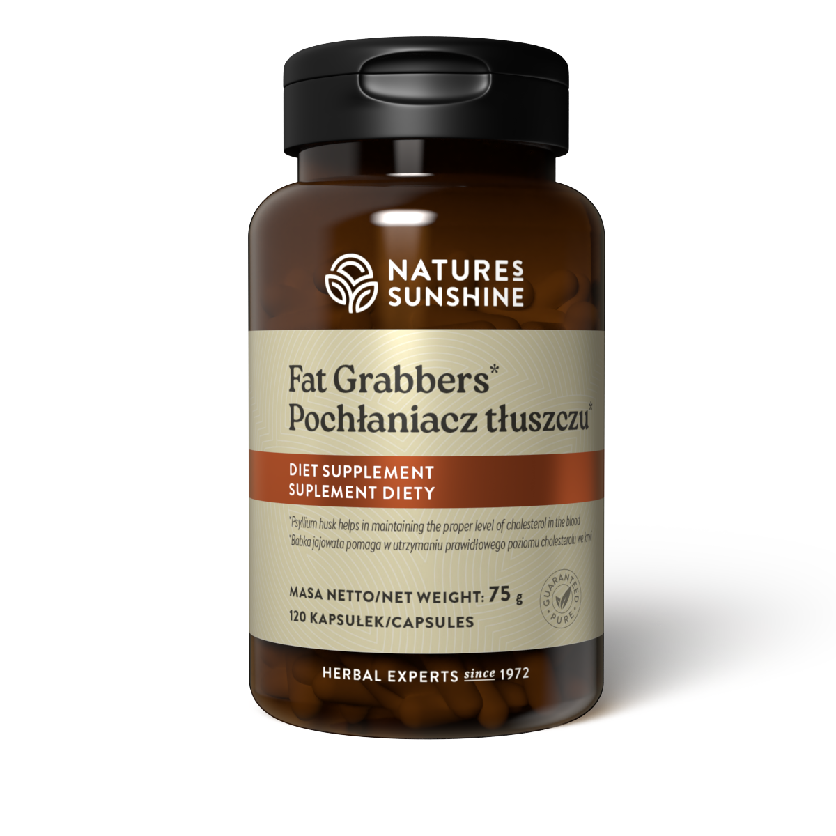 Pochłaniacz Tłuszczu to jeden z najpopularniejszych produktów w ofercie Nature’s Susnhine Products. Swoje działanie zawdzięcza starannie dobranym składnikom. Produkt tworzy opatentowana mieszanka gumy śluzowej guarowej, babki jajowatej, gwiazdnicy pospolitej i lecytyny sojowej. Dzięki zawartości babki jajowatej Pochłaniacz Tłuszczu pomaga utrzymać prawidłowy poziom cholesterolu i lipidów we krwi, a także pomaga zachować zdrowe jelita.